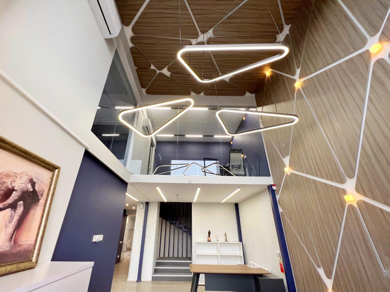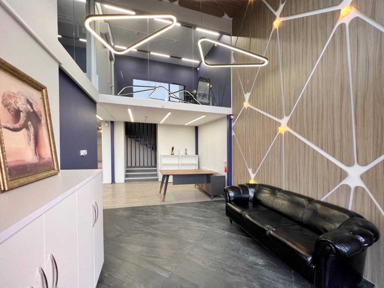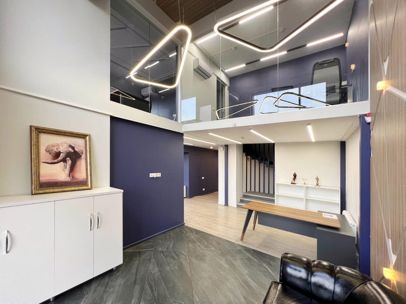 Это современный офис с авторским дизайном, оборудованием и мебелью.