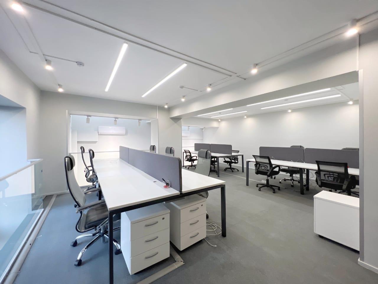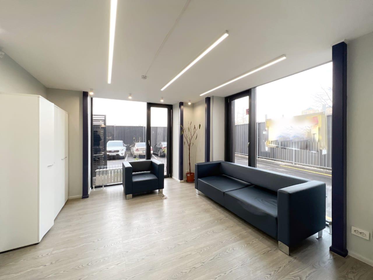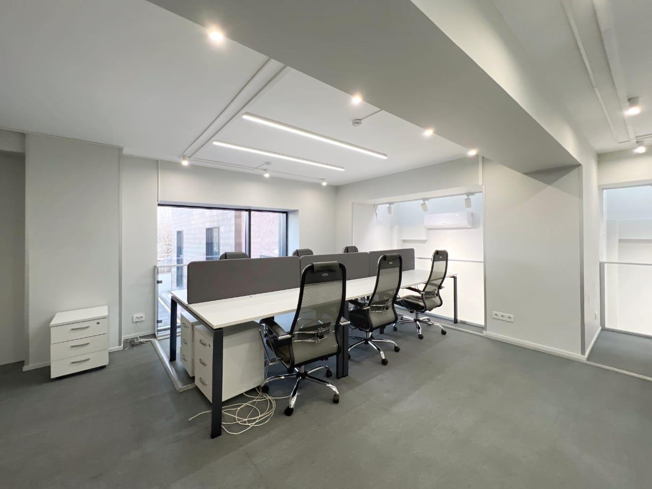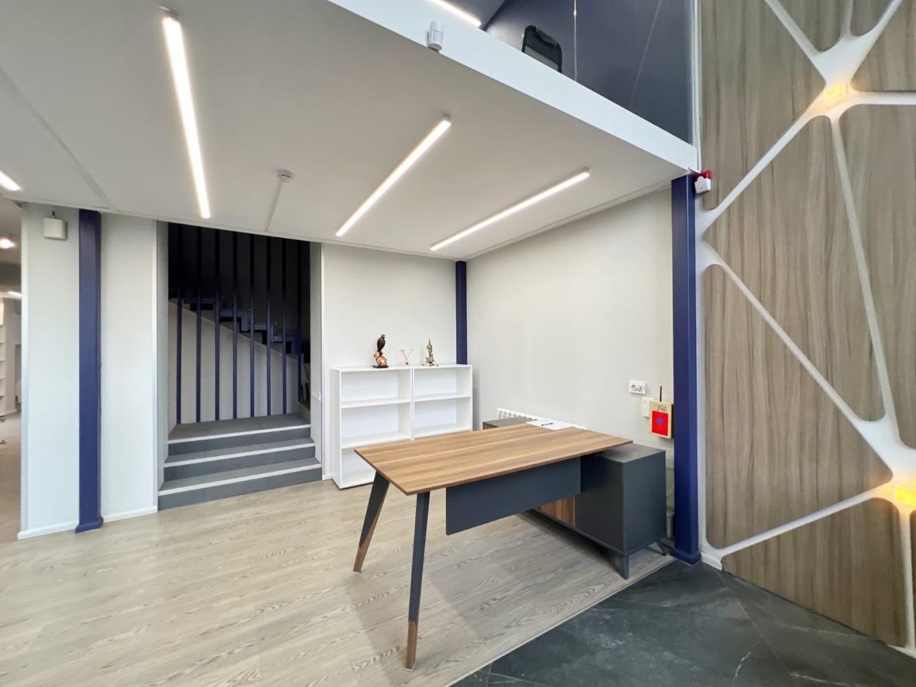 На втором этаже : кабинет руководителя с собственным санузлом, зал переговоров, и 2 рабочие зоны для сотрудников. Офис оснащен офисной мебелью, 2 санузла, 2 кухни буфета, служебное помещение под серверную.
